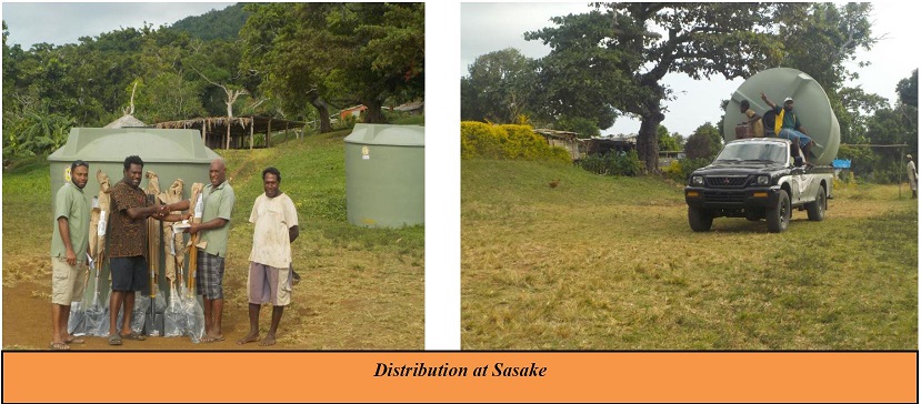 The purpose of this trip was to do the official handing over of farmings and distribute them like spades, chicken wires, pig fence wires, potting trays, potting mix, water tanks, poly bags, chain saw, knifes, and others.